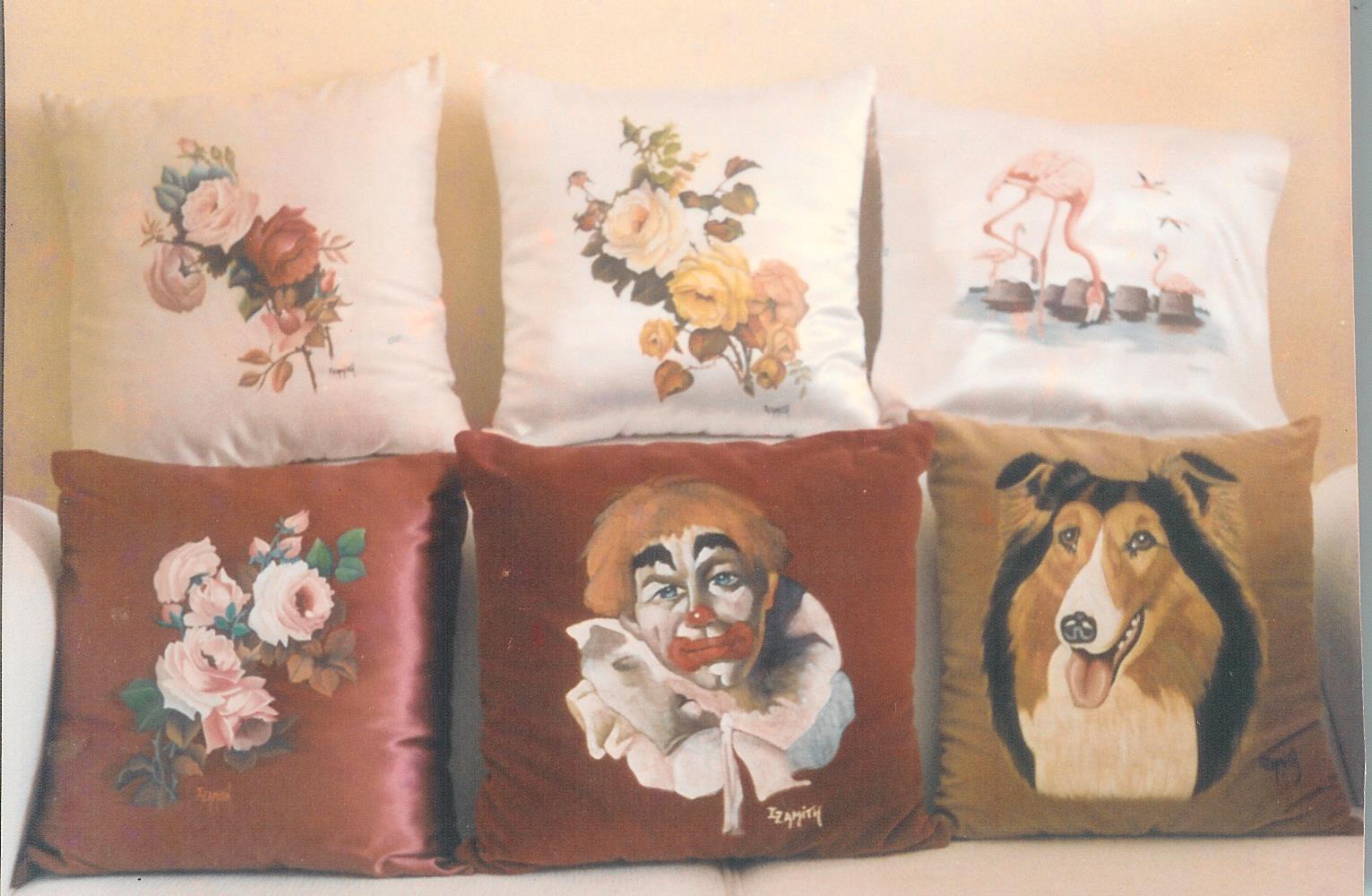 * Lancei com muito sucesso, almofadas pintadas com Retratos de Artistas Reconhecidos Mundialmente, como: