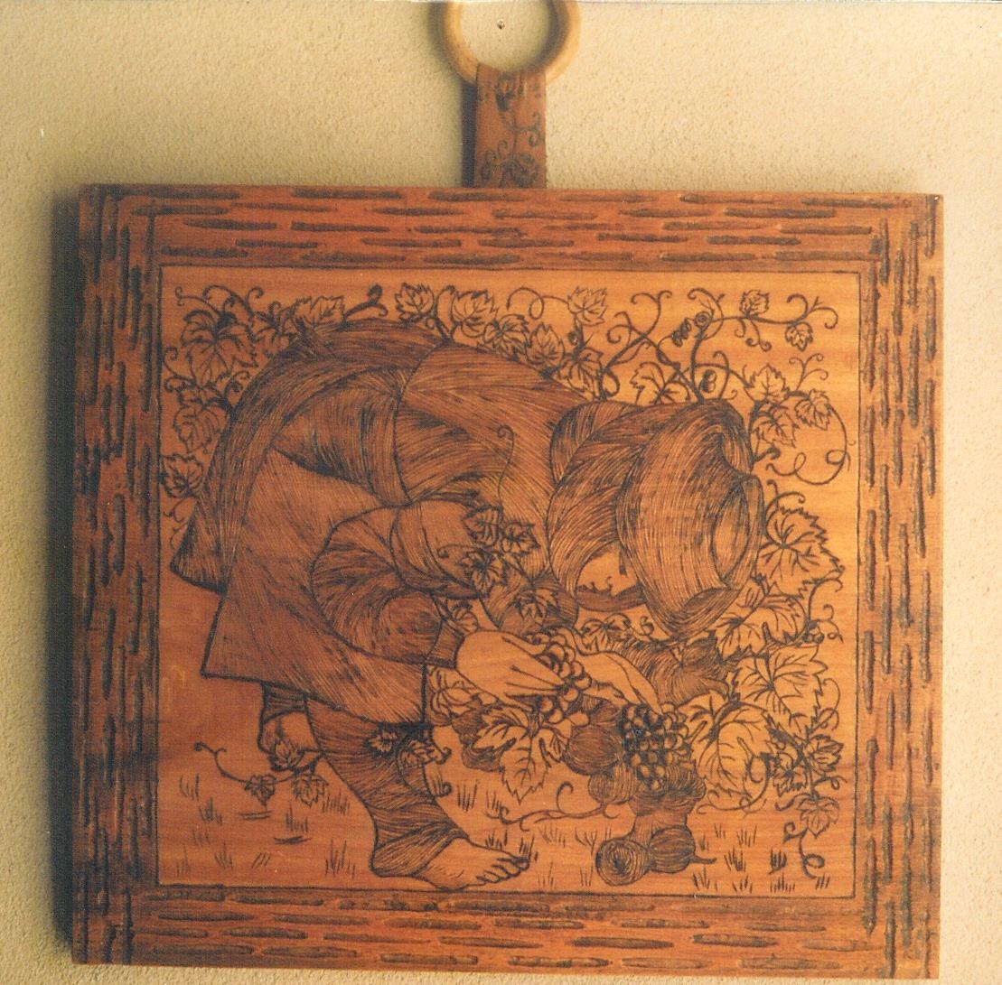 Técnica: Madeira Tola, Pirogravada à mão, Moldura trabalhada com goiva.