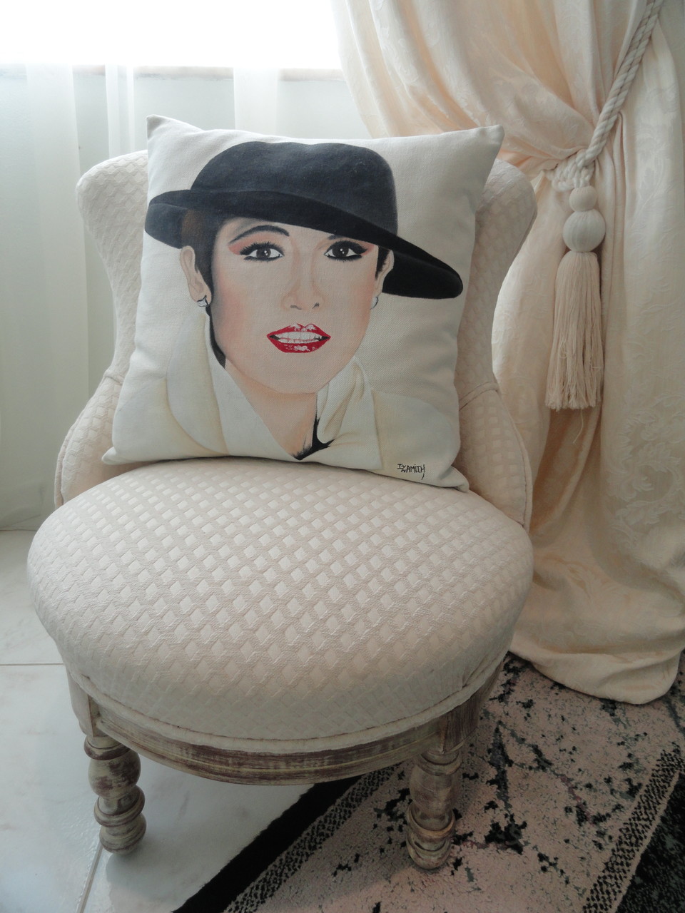 * Lancei com muito sucesso, almofadas pintadas com Retratos de Artistas Reconhecidos Mundialmente, como: