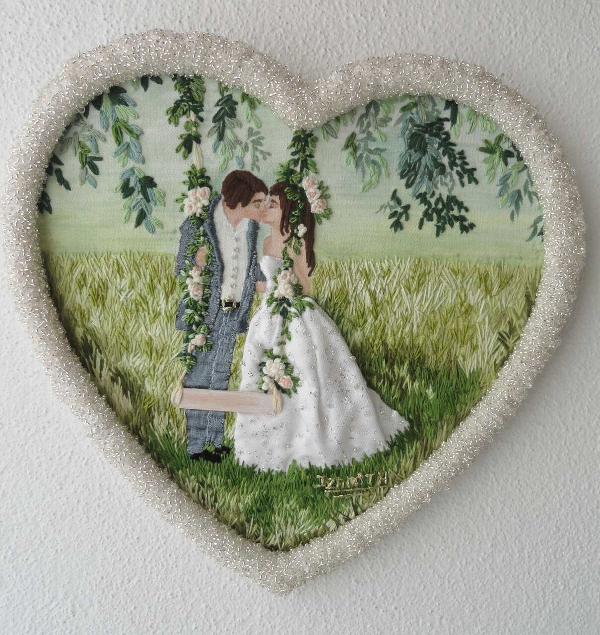 Técnica Mista s/ Tecido pintado a Óleo e Bordado "O Casamento" 2023